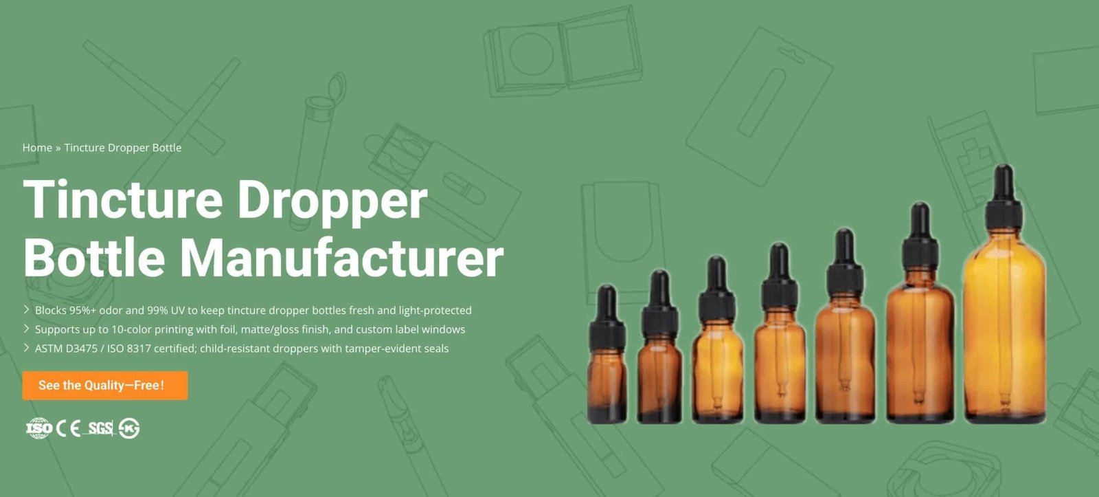 Descrição: A manufacturer focused on cannabis packaging, offering child-resistant glass dropper bottles with CR tops for oils and e-liquids.