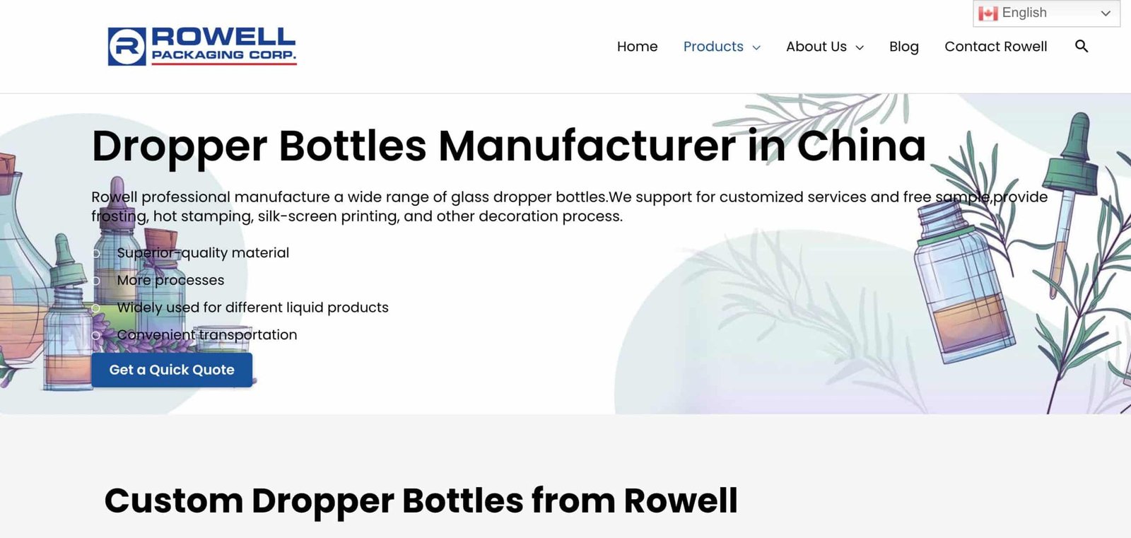 Descrição: RowellPACKAGE is a professional manufacturer for a wide range of glass dropper bottles, supporting bulk and custom orders for cosmetics, skincare, CBD, and specialty applications.